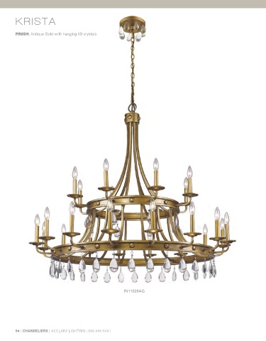 KRISTA FINISH: Antique Gold with hanging K9 crystals IN11028AG 94 | CHANDELIERS | ACCLAIM LIGHTING | 866-845-5451