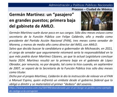 hasta 2024. Martínez resultó ser la primera baja en el gabinete de López