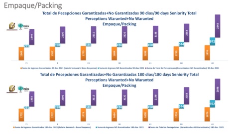 Suma de Ingresos Garantizados 180 dias 2021 (Salario Semanal + Bono Despensa) Suma de Ingresos NO Garantizados 180 dias 2021 Suma de Total de Percepciones (Garantizadas+NO Garantizadas) 180 dias 2021