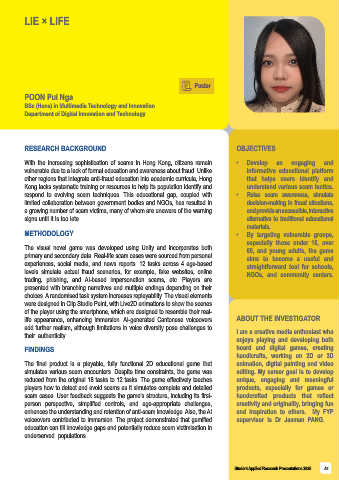 enhances the understanding and retention of anti-scam knowledge. Also, the AI and inspiration to others. My FYP