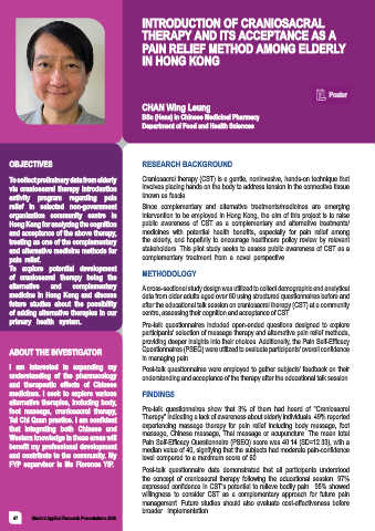 Hong Kong for analyzing the cognition public awareness of CST as a complementary and alternative treatments/
