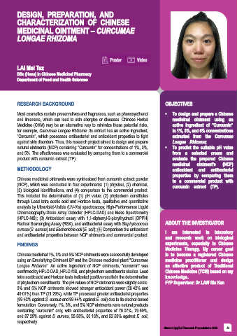 of phytochem constituents. The pH values of NCP ointments were slightly acidic. FYP Supervisor: Dr LAW Siu Kan
