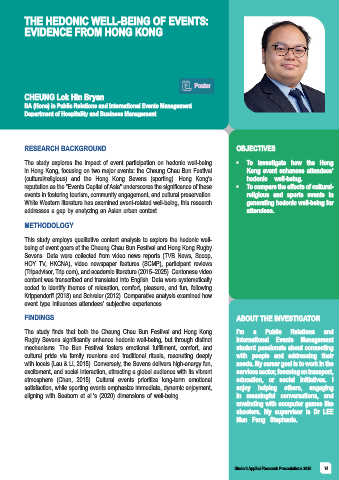 The study explores the impact of event participation on hedonic well-being • To investigate how the Hong