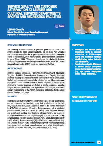 The popularity of sports continues to grow with government support, in this • Investigate how service quality