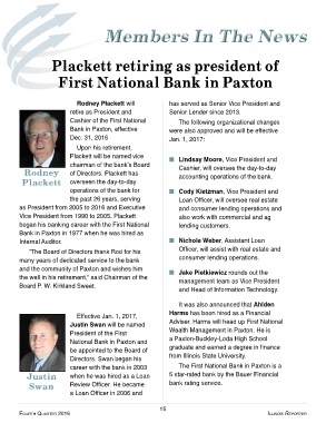 career with the bank in 2003 The First National Bank in Paxton is a