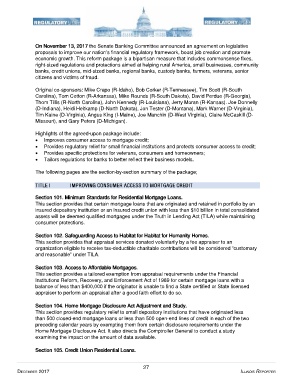 • Provides regulatory relief for small financial institutions and protects consumer access to credit;