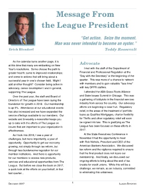 League. But before we close the book on 2017, breaks for credit unions. While this will be a