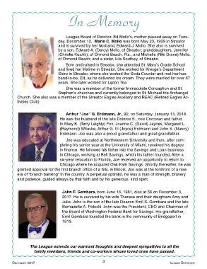 League Board of Director, Ed Mollo’s, mother passed away on Tuesday, December 12.