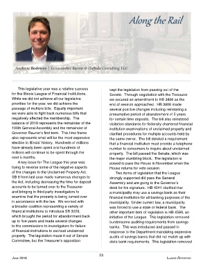 for the Illinois League of Financial Institutions. Senate. Through negotiation with the Treasurer