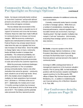 multiples for bank acquisitions has increased McGladrey, Inc., in addition to establishing his