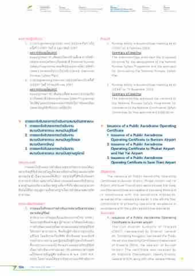 The issuance of Public Aerodrome Operating Certificates to Buriram Airport, Phuket Airport, Hat Yai Airport, and Surat Thani Airport demonstrates that these certified aerodromes are capable of operating safely and in compliance with the aerodrome standards, as well as other relevant standards. It also affirms their commitment to achieving operational excellence in accordance with the public aerodromes standards. Summary