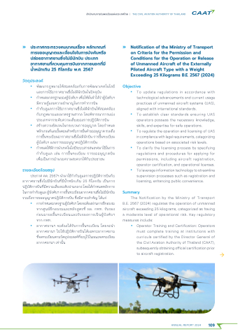พิ่ัฒนากฎหมายให้สำอด้คัล้องกับิการพิ่ัฒนาเที่คัโนโลย่ และการใช่้อากาศยานซึ่ึงไม่ม่นักบิินในปีัจจุบิัน กําาหนด้มาตัรฐานของผู้บิ้้ งั คัับิฯเพิ่อ้ ให้มนั จําาได้้ว่าผู้บิ้้ งั คัับิฯ ม่คัวามร้แ้ ละคัวามช่ําานาญในการที่ําาการบิิน กําากับิด้้แลการใช่้อากาศยานซึ่ึงไม่ม่นักบิินให้สำอด้คัล้อง กับิกฎหมายและมาตัรฐานสำากล โด้ยพิ่ิจารณ์าการแบิ่ง ปีระเภที่จากระด้ับิคัวามเสำ่ยงของการปีฏิิบิัตัิการบิิน สำร้างคัวามช่ัด้เจนในกระบิวนการอนุญาตั โด้ยกําาหนด้ หลกั เกณ์ฑิ์และขนั ตัอนสำําาหรบิั การยน้ คัําาขออนญุ าตัรวมถึงึ การขึนที่ะเบิ่ยนอากาศยานซึ่ึงไม่ม่นักบิิน การขึนที่ะเบิ่ยน ผู้้้บิังคัับิฯ และการขออนุญาตัปีฏิิบิัตัิการบิิน กําาหนด้ให้มก่ ารนําาเที่คัโนโลยร่ ะบิบิสำารสำนเที่ศมาใช่ใ นการ กําากับิด้้แล เช่่น การขึนที่ะเบิ่ยน การขออนุญาตับิิน เพิ่้อเปี็นการอําานวยคัวามสำะด้วกให้กับิปีระช่าช่น