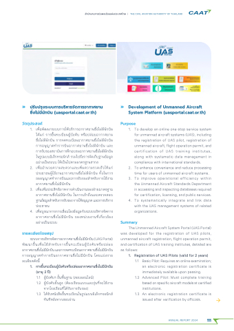 ระบิบิการบิรหิ ารจด้ั การอากาศยานซึ่งึ ไมม่ น่ กั บินิ (UASPortal) พิ่ัฒนาขึนเพิ่้อใช่้สำําาหรับิการขึนที่ะเบิ่ยนผู้้้บิังคัับิหร้อปีล่อย อากาศยานซึ่งึ ไมม่ น่ กั บินิ และการจด้ที่ะเบิย่ นอากาศยานซึ่งึ ไมม่ น่ กั บินิ การอนุญาตัที่ําาการบิินอากาศยานซึ่ึงไม่ม่นักบิิน โด้ยแบิ่งราย ละเอ่ยด้ด้ังน่