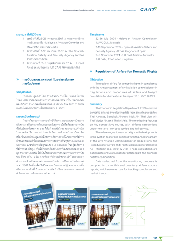 The airfare regulation system aligns with developments in the aviation sector and complies with the Announcement of the Civil Aviation Commissioner on Regulations and Procedures for Airfare and Freight Calculation for Domestic Air Transport B.E. 2561 (2018). These regulations are designed to ensure fairness for passengers and promote healthy competition.