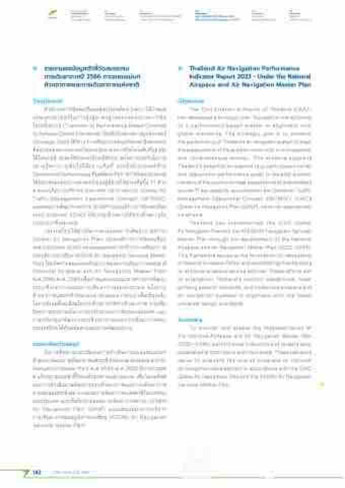ปีระเที่ศไที่ยได้้ด้ําาเนินการตัามแผู้นการเด้ินอากาศสำากล (Global Air Navigation Plan) ขององคั์การการบิินพิ่ลเร้อน ระหว่างปีระเที่ศ (ICAO) และแผู้นแม่บิที่การบิรกิ ารการเด้ินอากาศ ของภ้มิภาคัอาเซึ่่ยน (ASEAN Air Navigation Services Master Plan) โด้ยจัด้ที่ําาแผู้นแม่บิที่ห้วงอากาศและการเด้ินอากาศแห่งช่าตัิ (National Airspace and Air Navigation Master Plan) พิ่.ศ.2565-พิ่.ศ. 2583 เพิ่้อกําาหนด้กรอบิแนวที่างที่างการพิ่ัฒนา ระบิบิห้วงอากาศและการเด้ินอากาศของปีระเที่ศ นโยบิาย ห้วงอากาศแห่งช่าตัิ (National Airspace Policy) เพิ่้อเปี็นกลไก ในการขับิเคัล้อนเช่ิงนโยบิายด้้านการบิรหิ ารห้วงอากาศ การเพิ่ิม ข่ด้คัวามสำามารถึในการรองรับิระบิบิการบิินของปีระเที่ศ และ การปีรับิปีรุง/พิ่ัฒนาระบิบิห้วงอากาศและการเด้ินอากาศของ ปีระเที่ศไที่ยให้ที่ันสำมัยตัามแนวที่างพิ่ัฒนาสำากล