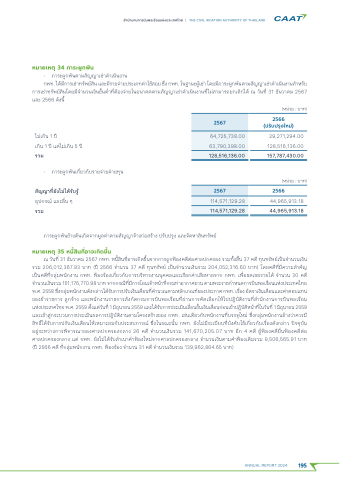 ณ์วันที่่31ธันวาคัม2567กพิ่ที่.หน่สำินที่่อาจเกิด้ขึนจากการถึ้กฟื้้องคัด้่ตั่อศาลปีกคัรองรวมที่ังสำิน37คัด้่ทีุ่นที่รพิ่ั ย์เปี็นจําานวนเงิน รวม 206,012,367.93 บิาที่ (ปีี 2566 จําานวน 37 คัด้่ ทีุ่นที่รพิ่ั ย์ เปี็นจําานวนเงินรวม 204,052,316.60 บิาที่) โด้ยคัด้่ที่่ม่คัวามสำําาคััญ เปี็นคัด้่ที่่กลุ่มพิ่นักงาน กพิ่ที่. ฟื้้องร้องเก่ยวกับิการบิรหิ ารงานบิุคัคัลและเรย่ กคั่าเสำ่ยหายจาก กพิ่ที่. เพิ่้อช่ด้เช่ยรายได้้ จําานวน 30 คัด้่ จําานวนเงนิ รวม151,176,770.98บิาที่จากกรณ์่ที่่ม่การโอนเจ้าหน้าที่่กรมที่่าอากาศยานตัามพิ่ระราช่กําาหนด้การบิินพิ่ลเรอ้ นแห่งปีระเที่ศไที่ย พิ่.ศ.2558ซึ่งึ กล่มุ พิ่นักงานด้ังกล่าวได้้รบิั การปีรบิั เงนิ เด้้อนที่่คัําานวณ์ตัามหลักเกณ์ฑิ์ของปีระกาศกพิ่ที่.เรอ้ งอัตัราเงนิ เด้้อนและคั่าตัอบิแที่น ของข้าราช่การ ล้กจ้าง และพิ่นักงานราช่การสำังกัด้กรมการบิินพิ่ลเรอ้ นที่่ผู้่านการคััด้เล้อกใหไปีปีฏิิบิัตัิงานที่่สำําานักงานการบิินพิ่ลเรอ้ น แห่งปีระเที่ศไที่ยพิ่.ศ.2559ตัังแตั่วนั ที่่1มิถึุนายน2559และได้้รบิั การปีระเมินเล้อนขันเงนิ เด้้อนก่อนเข้าปีฏิิบิัตัิหน้าที่่ในวนั ที่่1มิถึุนายน2559 และเข้าสำ่้กระบิวนการปีระเมินผู้ลการปีฏิิบิัตัิงานตัามโคัรงสำร้างของ กพิ่ที่. เช่่นเด้่ยวกับิพิ่นักงานที่่บิรรจุใหม่ ซึ่ึงกลุ่มพิ่นักงานอ้างว่าคัวรม่ สำิที่ธิได้้รบิั การปีรบิั เงินเด้้อนให้เหมาะสำมกับิปีระสำบิการณ์์ ซึ่ึงในขณ์ะนัน กพิ่ที่. ยังไม่ม่ระเบิ่ยบิที่่บิังคัับิใช่้เก่ยวกับิเรอ้ งด้ังกล่าว ปีัจจุบิัน อย้่ระหว่างการพิ่ิจารณ์าของศาลปีกคัรองกลาง 26 คัด้่ จําานวนเงินรวม 141,670,205.07 บิาที่ อ่ก 4 คัด้่ ผู้้้ฟื้้องคัด้่ย้นฟื้้องคัด้่ตั่อ ศาลปีกคัรองกลาง แตั่ กพิ่ที่. ยังไม่ได้้รบิั สำําาเนาคัําาฟื้้องใหม่จากศาลปีกคัรองกลาง จําานวนเงินตัามคัําาฟื้้องเด้ิมรวม 9,506,565.91 บิาที่ (ปีี 2566 คัด้่ ที่่กลุ่มพิ่นักงาน กพิ่ที่. ฟื้้องร้อง จําานวน 31 คัด้่ จําานวนเงินรวม 139,962,864.65 บิาที่)