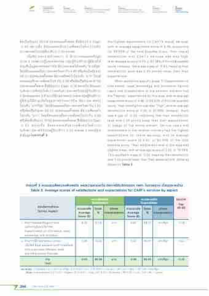 ตริงที 3 คะแนนเฉุลียควมพัึงพัอใจ และควมคดูห้วัง ต่อกำริให้้บริิกำริของ กำพัท. ในภัพัริวม จําแนกำริยดู้น Table 3: Average scores of satisfactions and expectations for CAAT’s services by aspect