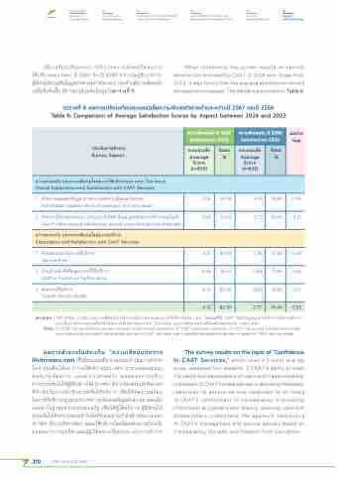 When comparing the survey results on service satisfaction provided by CAAT in 2024 with those from 2023, it was found that the average satisfaction across all areas had increased. The details are provided in Table 6.