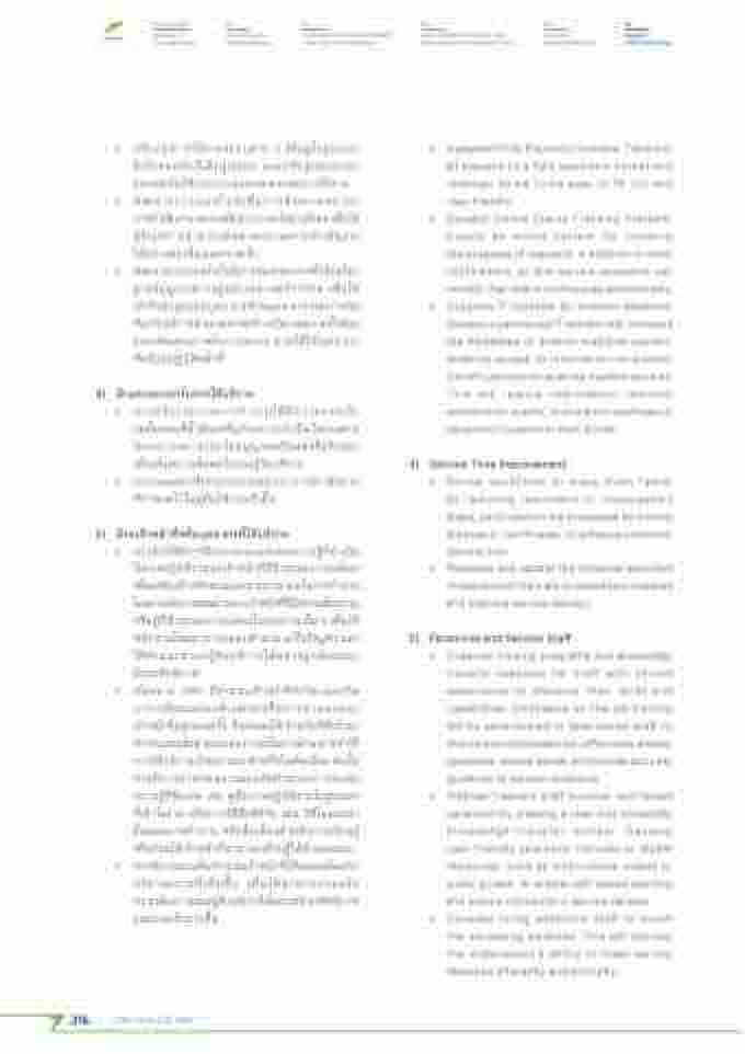 • คัวรจัด้ให้ม่การฝ่ึกอบิรมและสำ่งตั่อคัวามร้ที่้ ่จําาเปี็น ในการปีฏิิบิัตัิงานแก่เจ้าหน้าที่่ที่่ม่ปีระสำบิการณ์์น้อย เพิ่้อเสำรมิ สำรา้ งที่ักษะและคัวามสำามารถึในการที่ําางาน โด้ยอาจเนน้ การสำอนงานจากเจา้ หนา้ ที่ที่่ ม่ คั่ วามเช่ย่ วช่าญ หรอ้ ผู้้้ที่่ม่ปีระสำบิการณ์์ตัรงในสำายงานนันๆเพิ่้อให้ พิ่นักงานใหม่สำามารถึตัอบิคัําาถึาม แกไขปีัญหา และ ให้คัําาแนะนําาแก่ผู้้้รับิบิริการได้้อย่างถึ้กตั้องและ ม่ปีระสำิที่ธิภาพิ่
