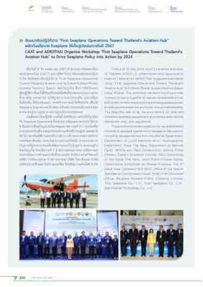 เม้อวันที่่ 8-10 พิ่ฤษภาคัม 2567 สำําานักงานการบิินพิ่ลเรอ้ น แห่งปีระเที่ศไที่ย (CAAT) และ บิรษิ ัที่ วที่ิ ยุการบิินแห่งปีระเที่ศไที่ย จําากัด้ จัด้สำัมมนาเช่ิงปีฏิิบิัตัิการ “First Seaplane Operations Toward Thailand’s Aviation Hub” ณ์ โรงแรม Pullman Phuket Arcadia Naithon Beach จังหวัด้ภ้เก็ตั ซึ่ึงการจัด้สำัมมนา เช่งิ ปีฏิบิิ ตัั กิ ารในคัรงั นเ่ ปีน็ เสำมอ้ นจดุ้ เรมิ ตั้นที่ที่่ กุ หนว่ ยงาน ที่กุ ภาคัสำ่วน ที่ังภาคัรฐั และเอกช่น จะได้้บิ้รณ์าการคัวามร่วมม้อ แลกเปีล่ยน ข้อคัิด้เห็น ให้ข้อเสำนอแนะ และสำร้างคัวามเข้าใจที่่ตัรงกัน เพิ่้อให้ Seaplane Operations ด้ําาเนินการด้้วยคัวามปีลอด้ภัย สำอด้คัล้อง ตัามมาตัรฐาน กฎหมาย และกฎระเบิ่ยบิของปีระเที่ศ