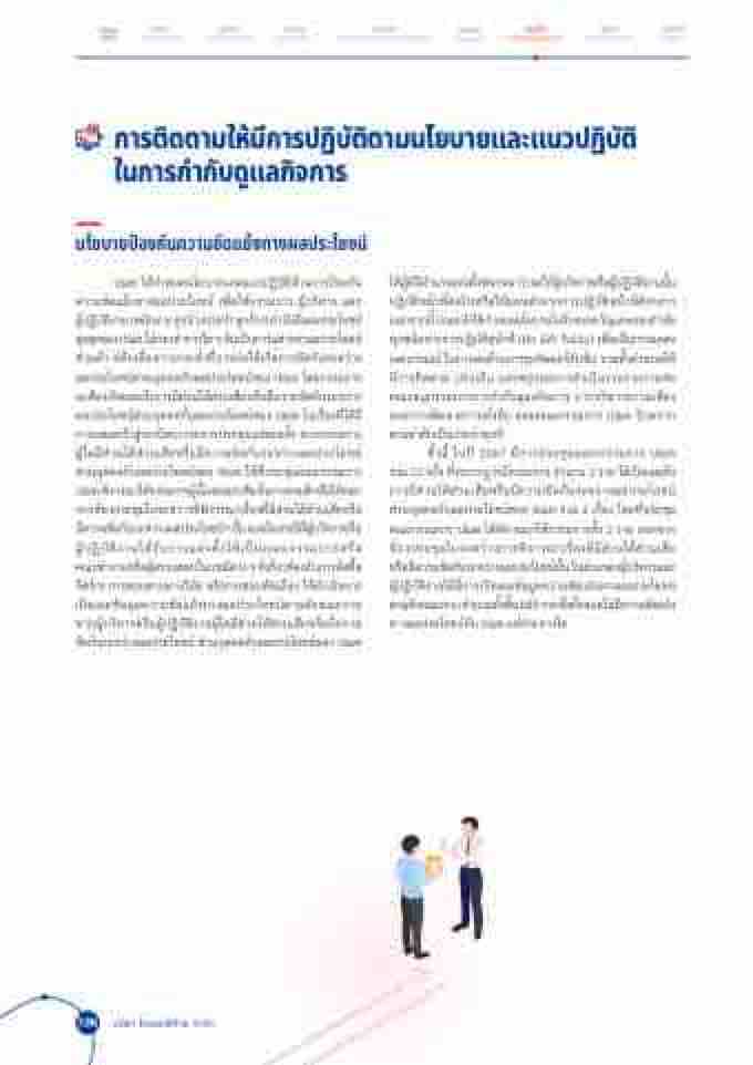ปณท ได้้กิําาหนด้นโยบายและแนวัปฏิิบัติิด้้านกิารัป้องกิัน ค์วัามีข้ัด้แย้งทางผลปรัะโยช้น์ เพั่อให้กิรัรัมีกิารั ผู้บรัิหารั และ ผปู้ ฏิิบติั ิงาน (พันกิั งาน ลกิู จ้างปรัะจําา ลกิู จ้าง) ค์ําานงึ ถึงผลปรัะโยช้น์ สงู สดุ้ ข้อง ปณท ไมีกิ่ รัะทําากิารัใด้ ๆ อนั เปน็ กิารัแสวังหาผลปรัะโยช้น์ ส่วันติัวั หลีกิเลียงกิารักิรัะทําาทีอาจกิ่อให้เกิิด้กิารัข้ัด้กิันรัะหวั่าง ผลปรัะโยช้น์ส่วันบุค์ค์ลกิับผลปรัะโยช้น์ข้อง ปณท โด้ยกิรัรัมีกิารั จะติ้องเปิด้เผยถึงกิารัมีีส่วันได้้ส่วันเสียหรั่อมีีค์วัามีข้ัด้กิันรัะหวั่าง ผลปรัะโยช้น์ส่วันบุค์ค์ลกิับผลปรัะโยช้น์ข้อง ปณท ในเรั่องทีได้้มีี กิารัเสนอเข้้าสู่รัะเบียบวัารัะกิารัปรัะชุ้มีแติ่ละค์รััง หากิกิรัรัมีกิารั ผู้ใด้มีีส่วันได้้ส่วันเสียหรั่อมีีค์วัามีข้ัด้กิันรัะหวั่างผลปรัะโยช้น์ ส่วันบุค์ค์ลกิับผลปรัะโยช้น์ข้อง ปณท ให้ทีปรัะชุ้มีค์ณะกิรัรัมีกิารั ปณท พัจิ ารัณาใหกิ้ รัรัมีกิารัผนู้ นั งด้ออกิเสยี งในกิารัลงมีติิ หรัอ่ ใหอ้ อกิ จากิห้องปรัะชุ้มีในรัะหวั่างทีพัิจารัณาเรั่องทีมีีส่วันได้้ส่วันเสียหรั่อ มีค์ี วัามีข้ด้ั กินั รัะหวัา่ งผลปรัะโยช้นฯ์ นนั และในกิรัณที ผี บู้ รัหิ ารัหรัอ่ ผู้ปฏิิบัติิงานได้้รัับกิารัแติ่งติังให้เป็นค์ณะกิรัรัมีกิารัหรั่อ ค์ณะทําางานหรัอ่ ผติู้ รัวัจสอบในกิรัณติี ่างๆทีเกิียวัข้อ้ งกิับกิารัจัด้ซึ่อ่ จัด้จ้าง กิารัสอบสวันทางวัินัย หรั่อกิารัสอบค์ัด้เล่อกิ ให้ด้ําาเนินกิารั เปิด้เผยข้้อมีูลค์วัามีข้ัด้แย้งทางผลปรัะโยช้น์ติามีลักิษณะงาน หากิผู้บรัิหารัหรั่อผู้ปฏิิบัติิงานผู้ใด้มีีส่วันได้้ส่วันเสียหรั่อมีีค์วัามี ข้ัด้กิันรัะหวั่างผลปรัะโยช้น์ สวั่ นบุค์ค์ลกิับผลปรัะโยช้น์ข้อง ปณท