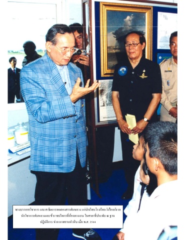 ทรงบรรยายวิชาการ และสาธิตการทดลองสารฝนหลวง แก่นักเรียนโรงเรียนวังไกลกังวล นักวิชาการฝนหลวงและข้าราชบริพารที่ห้องทรงงาน ในศาลาที่ประทับ ณ ฐาน ปฏิบัติการ ท่าอากาศยานหัวหิน เมื่อ พ.ศ. 2544