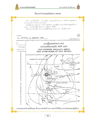ประมวลและยืนยันผลสัมฤทธิ์ฯ เอกสารเฉลิมพระเกียรติฝนหลวง ข้อแนะนําทางเทคนิคพระราชทาน 270 ทรงคาดหมายบริเวณที่เกิดเมฆ ที่สามารถทําฝนได้ พระราชทานให้ใช้ในการหวังผลในแผนปฏิบัติการ 342