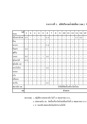 6.ตารางที่ 1. สถิติปริมาณนํ้าฝนที่ตก (มม.) จังหวัดนราธิวาส ประจําเดือนพฤษภาคม 2541