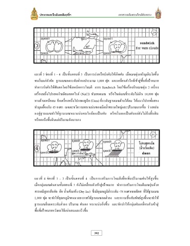 แถวที่ 3 ช่องที่ 1 – 4 เป็นขั้นตอนที่ 3 เป็นการเร่งหรือบังคับให้เกิดฝน เมื่อเมฆอุ่นเจริญเติบโตขึ้น