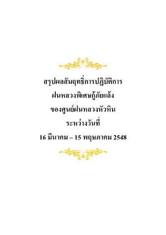 สรุปผลสัมฤทธิ์การปฏิบัติการ ฝนหลวงพิเศษกู้ภัยแล้ง ของศูนย์ฝนหลวงหัวหิน ระหว่างวันที่ 16 มีนาคม – 15 พฤษภาคม 2548