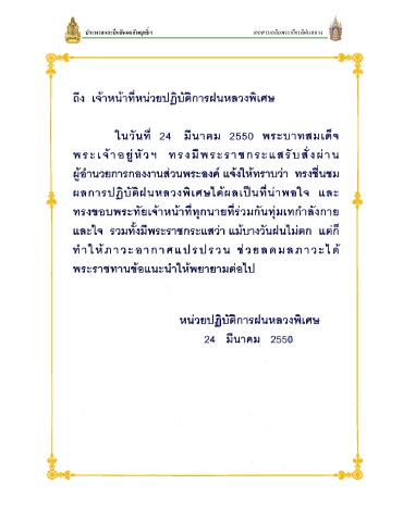 ประมวลและยืนยันผลสัมฤทธิ์ฯ เอกสารเฉลิมพระเกียรติฝนหลวง