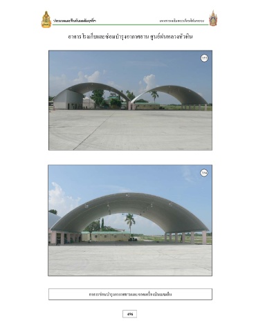 ประมวลและยืนยันผลสัมฤทธิ์ฯ เอกสารเฉลิมพระเกียรติฝนหลวง อาคารโรงเก็บและซ่อมบํารุงอากาศยาน ศูนย์ฝนหลวงหัวหิน 355 356 อาคารซ่อมบํารุงอากาศยานและจอดเครื่องบินเมฆเย็น 496
