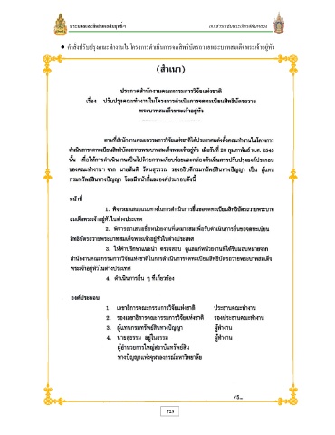 ประมวลและยืนยันผลสัมฤทธิ์ฯ เอกสารเฉลิมพระเกียรติฝนหลวง คําสั่งปรับปรุงคณะทํางานในโครงการดําเนินการจดสิทธิบัตรถวายพระบาทสมเด็จพระเจ้าอยู่หัว 723