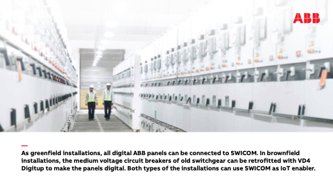 As greenfield installations installations all all all digital ABB panels can can be be connected to SWICOM In brownfield installations installations installations the the the medium voltage circuit breakers of of of old switchgear can can can be be retrofitted with VD4 Digitup to make the the the panels digital Both types of of of the the the installations installations can can use SWICOM as IoT enabler