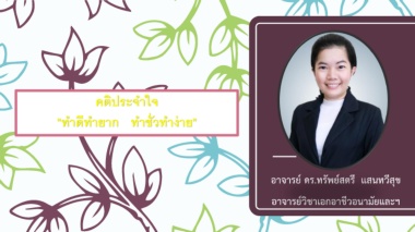 คติประจ ำใจ "ท ำดีท ำยำก ท ำชั่วท ำง่ำย" อาจารย์ ดร.ทรัพย์สตรี แสนทวีสุข อาจารย์วิชาเอกอาชีวอนามัยและฯ