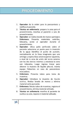 1. Operador da la orden para la paracentesis y