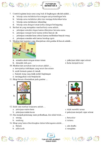 7. Contoh kegiatan kerja sama yang baik di lingkungan sekolah adalah…