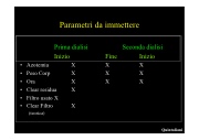 Parametri da immettere Prima dialisi Seconda dialisi Inizio Fine Inizio • Azotemia • Peso Corp • Ora • Clear residua X • Filtro usato X • Clear Filtro X (teorica) X XX X XX X X X Quintaliani