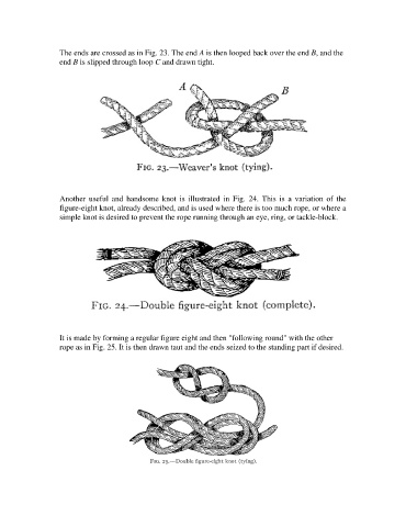The ends are crossed as in Fig. 23. The end A is then looped back over the end B, and the