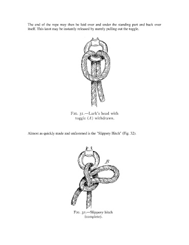 Almost as quickly made and unfastened is the "Slippery Hitch" (Fig. 32).