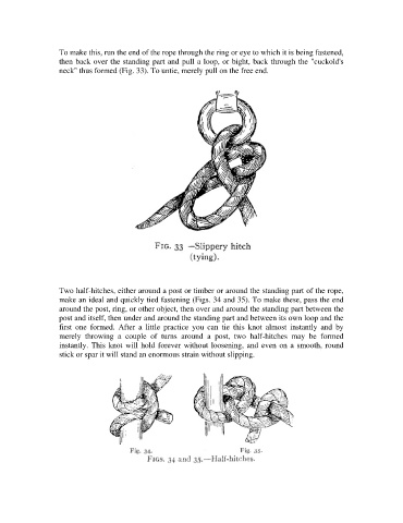 make an ideal and quickly tied fastening (Figs. 34 and 35). To make these, pass the end