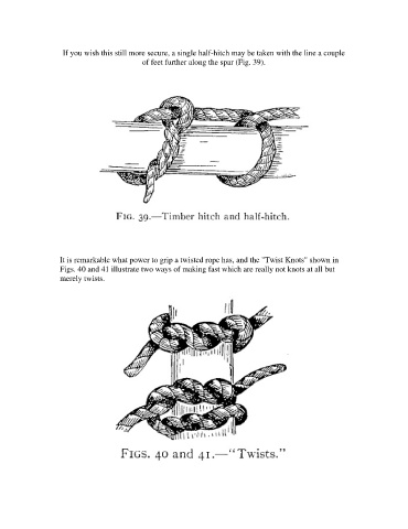 Figs. 40 and 41 illustrate two ways of making fast which are really not knots at all but