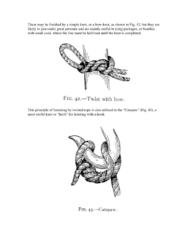 This principle of fastening by twisted rope is also utilized in the "Catspaw" (Fig. 43), a