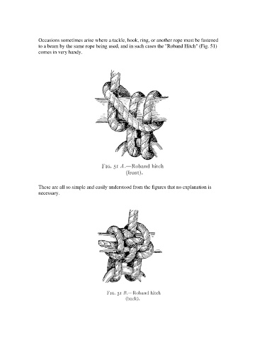 to a beam by the same rope being used, and in such cases the "Roband Hitch" (Fig. 51)