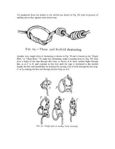Plait," or "Chain Knot." To make this shortening, make a running loop (A, Fig. 70), then