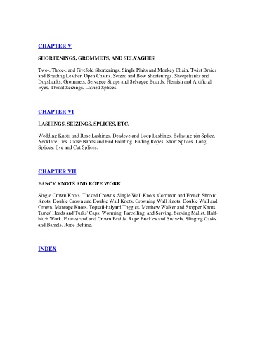 Necklace Ties. Close Bands and End Pointing. Ending Ropes. Short Splices. Long