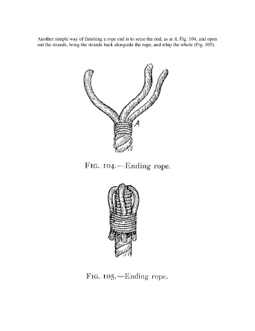 out the strands, bring the strands back alongside the rope, and whip the whole (Fig. 105).