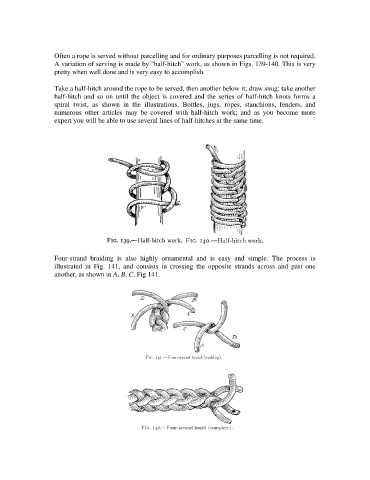 A variation of serving is made by "half-hitch" work, as shown in Figs. 139-140. This is very
