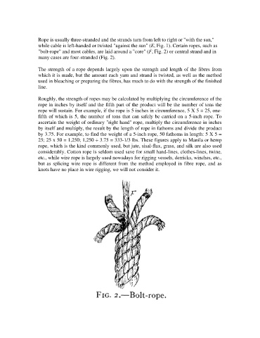 while cable is left-handed or twisted "against the sun" (E, Fig. 1). Certain ropes, such as