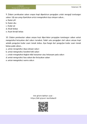 9. Dalam pembuatan sabun ampas kopi diperlukan pengujian untuk menguji kandungan